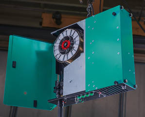 Das Drahtvorschubgerät ist kompakt in der Anlage verbaut.