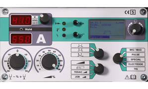 4-Job Bedienfeld, mit Korrekturpotentiometer (wahlweise Lichtbogenlänge oder Drahtvorschubgeschwindigkeit)