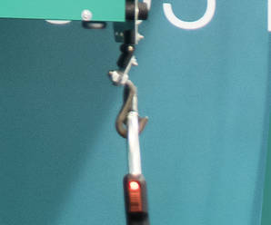 Brenneranschluss und Bedienfeld sind an der Unterseite montiert. Die Maße der Schweißanlage sind: L720 x B170 x H630 mm. Montage z.B. an Laufschienen über Befestigung an der Geräteoberseite. Strom- und Gaszufuhr ebenfalls von oben.