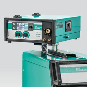 Verfügbar als kompakte Schweißanlage mit seitlich zugänglichem Drahtvorschub und integrierter Wasserkühlung