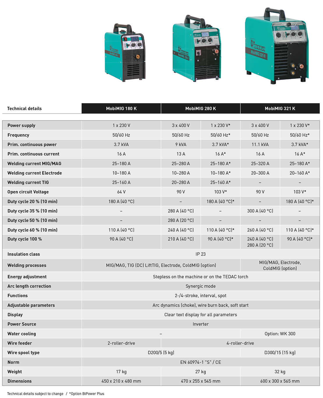 *only MobiMIG 180/280 K