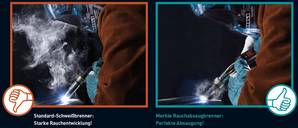 Dort absaugen, wo der Rauch entsteht klingt überzeugend: Und doch lehnten viele Schweißer die bislang am Markt erhältlichen Brenner ab und nahmen gesundheitliche Risiken bis hin zur gefürchteten Schweißerlunge in Kauf.
