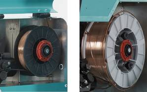 Die Geräte MobiMIG 180 K und 280 K sind für den Einsatz mit der kleinen D200 Drahtspule mit 5 kg ausgelegt. Dadurch bleiben die Schweißgeräte klein, leicht und handlich. Die Anlage MobiMIG 321 K verfügt über mehr Platz, so dass hier die Standard-Spulen D300 mit 15 kg eingesetzt werden.