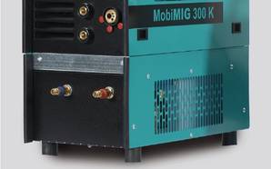 Auf Wunsch kann die MobiMIG 321 K mit dem Wasserkühlgerät WK 300 ausgestattet werden. Die Montage ist mit wenigen Handgriffen getan. Über eine elektrische Steckverbindung an der Rückseite erfolgt der Anschluss. Es ergeben sich flexible Einsatzmöglichkeiten: z.B. in der Werkstatt Schweißen mit Wasserkühlung und wassergekühltem Brenner, auf der Montage Arbeiten mit gasgekühltem Schweißbrenner.